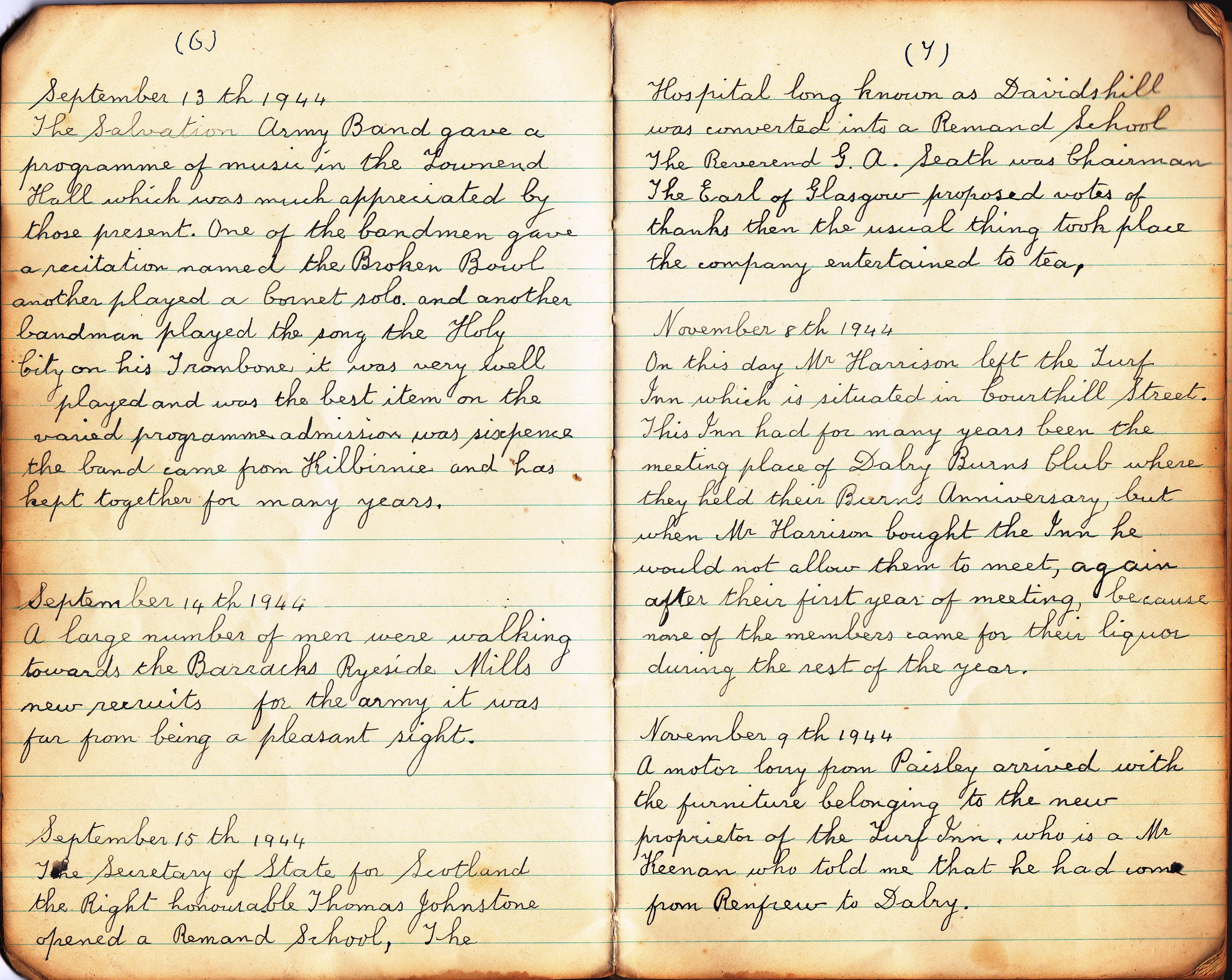 The new Headmaster began his duties today, his name is Mr Holland, he resided in Beith but will be coming to Dalry.