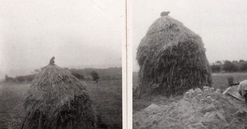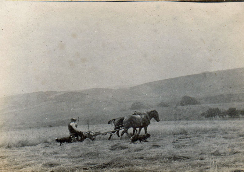 This is the field beside the road to Wardlaws. The machine is a combined drill which sowed the seed and manure, and produced a good crop.